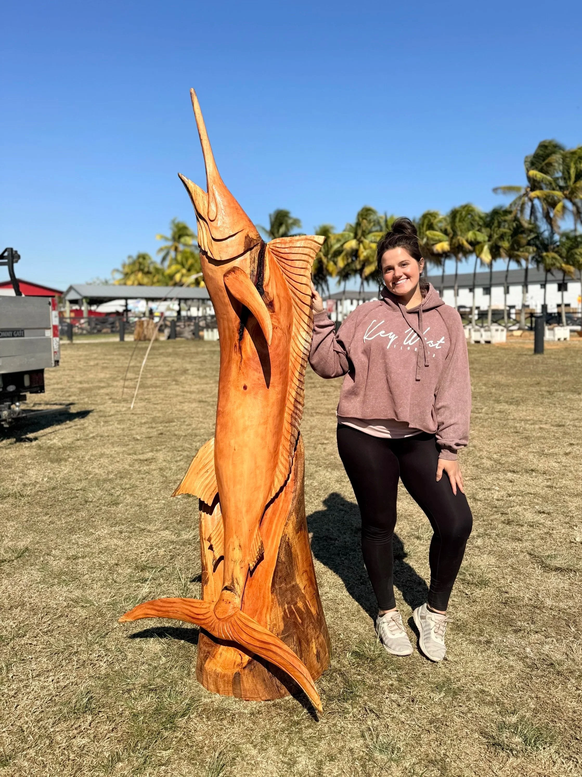 Her specialty lies in vibrant aquatic themes, inspired by the very fish carving that first sparked her passion. She also explores human form, expression, and other creatures found in nature, always striving to create pieces that feel alive with motion and symbolism.